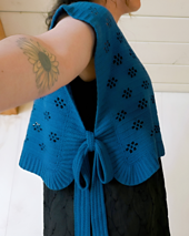 **SUGGESTED YARN:** Samples are shown in Knitting for Olive, Pure Silk for the button version and Knitting for Olive, Merino for the tie version. If you choose to use this yarn you will need: (If making the tie version you will need +1 extra ball than suggested) Regular Length - 5 (6, 6, 7, 8, 8, 9, 10, 10). Cropped Length - 4 (5, 5, 6, 7, 7, 8, 9, 9) balls.