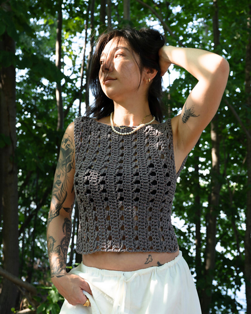 This pattern is a made-to-measure design, and can be adjusted to fit the wearer’s shape. Although I have used a worsted weight yarn, you can choose any weight of yarn & coordinating hook size to complete this top!