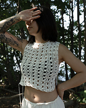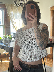 **Construction** - Garment is crocheted by creating two flat panels that are seamed along the upper shoulders and side seams of top.