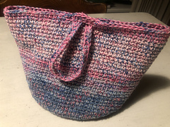 To achieve results similar to mine, consider using one solid yarn colorway and one variegated colorway. Or use up lots of small odds and ends to mix and match. It will be a cute finished bag that works up in just a couple of hours, and the best part is that there is no sewing or tricky stitches to work up.