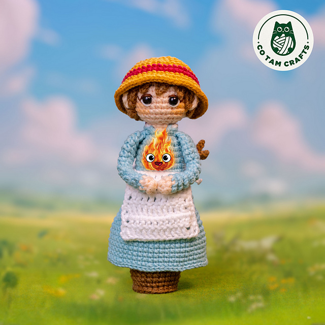 Crochet your own Sophie mini doll! Fast to make, beautifully detailed, and stands on her own. Perfect for anime fans!