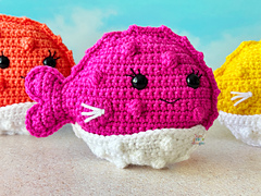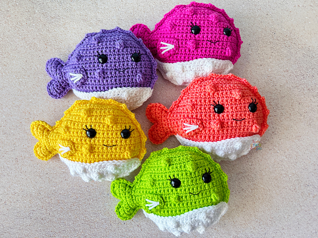 Our finished Mini Pufferfish project is 5.5” x 7.5” using the recommended hook size. You are welcome to go up or down a hook size to create a different dimension. You can even hold two pieces of yarn together with a larger hook to create a giant cuddler. The sky is the limit!