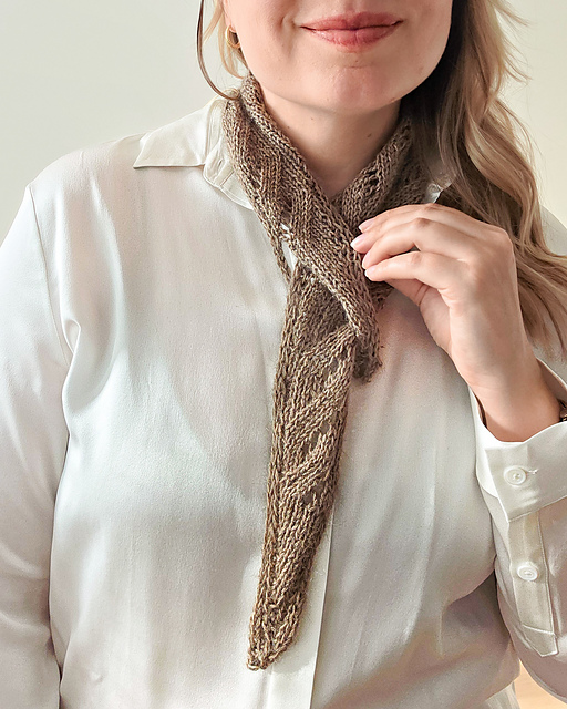 The scarf comes in two lengths: a short version that reaches just once around your neck, or a slightly longer one that you can wrap around your neck. The length of the scarfs can easily be modified. Just keep adding more pattern repeats for a longer scarf.