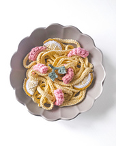 This pattern was designed not only to look amazing, but also to help your little chef learn about classic Italian pasta dishes.