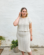 For the stitch patterns to show best, I recommend choosing unicolor or slightly tonal colorways. The Ebba skirt is worked in DK weight yarn but you can also knit it by holding one strand of fingering weight yarn together with a strand of silk mohair.