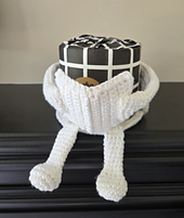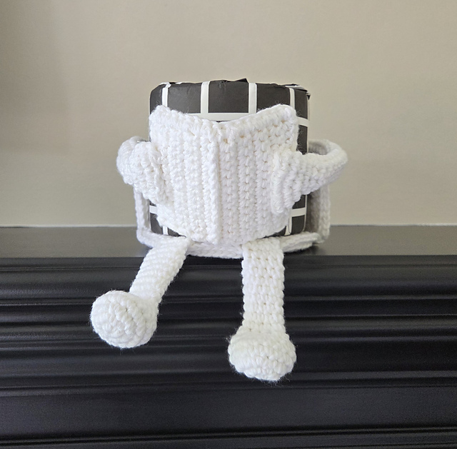 Finished measurements: 6” (15 cm) wide side to side, 7” (17.5 cm) wide front to back x 3.5” (9 cm) tall at back