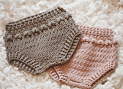 This diaper cover is worked from the waist down and is nearly seamless—only the crotch seam requires joining the front to the back. It features a convenient side button opening. Perfectly versatile, it pairs beautifully with many of my dress patterns or can be worn on its own.