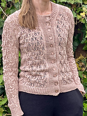 **Construction notes**: The cardigan is worked seamlessly and flat from the top down. It starts by casting on stitches for the back neckline and shaping the shoulders using lifted increases.