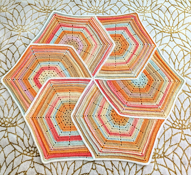 * Sample blanket uses approximately 1340 yards/1225m of Worsted (#4) weight yarn (1200 yards of Main Color, and 140 yards of Joining Color). I used Knit Picks Chroma Worsted in Mocktail and Bare for my sample.