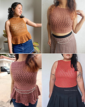 • #1 fingering weight yarn: peplum top length 36 cm, I used approximately 155g (423m) of cotton bamboo blend yarn + 1 strand of glitter thread, used 2.50 mm hook
