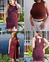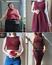 • #1 fingering weight yarn: bodycon dress length 73 cm, I used approximately 250g (680m) of cotton bamboo blend yarn + 1 strand of glitter thread, used 2.50 mm hook