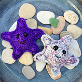 Grey starfish was made with Jadawoo Unwind DK; orange and purple starfish were made with Knitted Wit Gems held double.