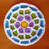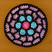 It is a pattern for a thick coaster in DK (light worsted ) cotton yarn that comes out about 4ins (20cm) and also a similar sized coaster in worsted (Aran) cotton yarn as shown in the photograph.