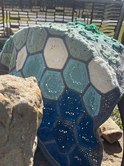 Made up of 137 Hexi’s to get the flower effect (For the 4 ply version), finding a join that I liked and then going about my business making it all.