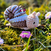 A crochet pattern (French, English and German) of a little snail (about 7cm).