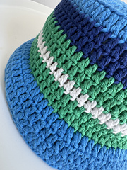 This design for a crochet bucket hat is bang on trend for summer. The brim is a straight, downward angle brim as seen on Love Island. It's worked in weight 4 100% cotton yarn, it's quick to make and uses minimal yarn.