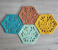 This pretty vintage-inspired crochet flower hexagon brings a touch of nostalgia to your projects. This beautiful lace motif works up quickly in just 4 rounds, making it perfect for both confident beginners and experienced crocheters.