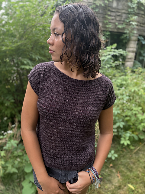 This simple tee is a perfect addition to your hand knit wardrobe! Knit with Farmers Daughters Fibers Foxy Lady, the simple yet addictive stitch pattern simply POPS with this yarn, I love the stitch definition and the drape is just perfect! I knit a second two color version using Purl Soho Linen Quill + Spincycle yarns Dyed in the Wool for a color changing top that goes with just about everything in my closet (one of my favorite parts of knitting with a color changing yarn)…I’ll bet you can’t knit just one of these tops!