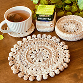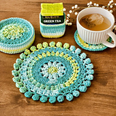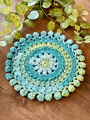 The Fields of Joy Trivet pattern celebrates the growth and glory of nature. The pattern features a floral bloom in the center surrounded by carefully textured stitches throughout. The design is accented with a whimsical pom pom fringe infusing it with fun, texture, and movement. Additionally, the pattern includes instructions for a matching coaster and holder, allowing you to create a cohesive and charming set.
