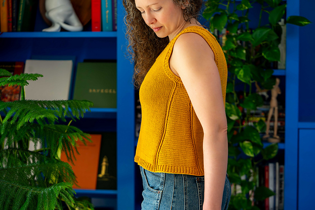 *This tank is designed to fit with 0-2” (0-5cm) of positive ease at the bust. The samples are shown in a size 3 with 0” (0 cm) of ease at the bust.*