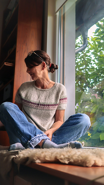 *My goal for the FLOWERiNG STONE tee was to combine a well fitted t-shirt and a colorwork sweater. And to use my mohair left overs of course! The main yarn is a cotton/wool blend that it nice to wear next to the skin and the colorwork fluff makes it so cozy!*