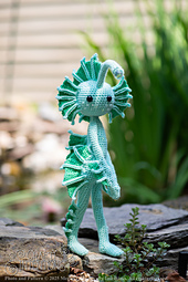 This pattern comes with instructions to make a Angler Fish Fae Fins and Esca for use with the Doll Body pattern, and it includes Fish Fae Ear Fins, a Center Head Fin, Arm Fins, Leg Fins, Hip Fins, a Back fin, and an optional Esca (Dangly big for the forehead) as well as assembly instructions.