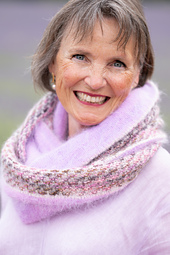 You can combine an endless variety of beautiful yarns, but Ines Edler of Pink Queen yarns also offers kits for this beautiful cowl. You are welcome to purchase these ready-made yarn kits from Ines or have her put together a selection of colors of your choice.