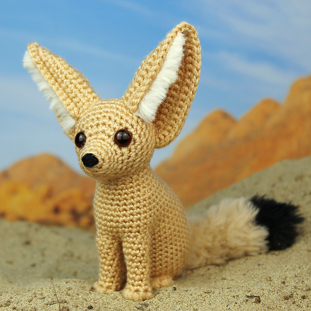 ~ optionally, for a fluffy tail: faux fur yarn in sand and black, and a 5mm/US size H hook