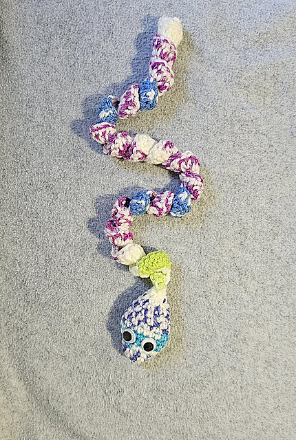 Slinky Snake works up fairly quick with minimal sewing, minimal stuffing, and the color options are endless!