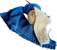 Blue scarf: Nøstebarn Silkeull, 656 yds/100 g. Uses approx. 295 yds (270 m).