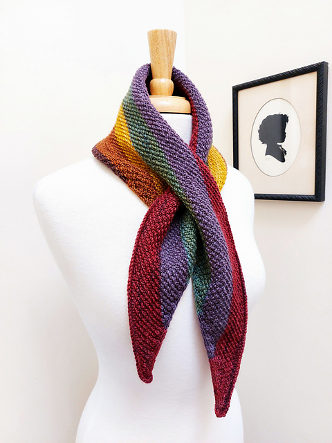 This little textured scarf has shaped ends and a keyhole for securing it around your neck.