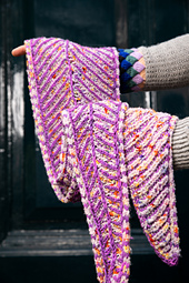 *Collect two colors of DK weight yarn to knit this two-color brioche scarflet. The pattern begins at the tip with increases on each edge and a centered decrease in the middle. The shape gradually increases in size for a narrow long shape that’s quick to knit and easy to wear. I used Walk Collection Merino DK for the main color with Qing Fibre’s boucle merino called Teddy. The boucle wool created a lofty fabric with a beautifully textured background. You only need one skein of each color for this quick knit.*