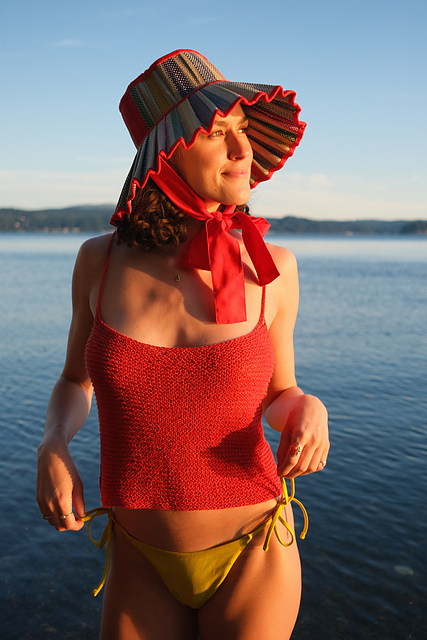 Knit at an open gauge out of a cotton/linen blend, this slinky tank top is meant to be worn after a day of sunshine and beach lounging when you need to throw something on, but still want to feel the whispers of the waves calling to you. The Salty Water Tank is worked from the bottom up in garter stitch with a subtle side seam detail running along the body. The wide almost cowl-neck and tiny straps create the perfect mixture of sloppy and chic because isn't that what vacation is?