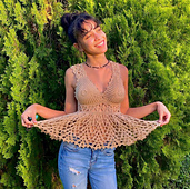 This Peplum Top was designed by Elizabeth Gonsalves in Trinidad, a sunny, tropical, twin island located in the Caribbean, also known as Trinidad and Tobago. I used Coboo Lion Brand Yarn for this Project (one of my most favourite yarns). To make this peplum top, I have sectioned the steps into 4 parts. These include making the cups in the round using a variety of stitches with majority being front post & back post Double crochets. Then making the bottom panel which includes the flower waist band & the flared bottom. Then joining the bottom panel to the cups, & lastly the straps will be made and attached. Please Read through the pattern before starting to familiarize yourself with the process.