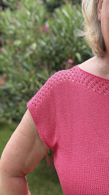 Attention all vegan yarn lovers. It is silky, slippery, elastic and gives a very special texture when knitted. The design is precisely tailored to these properties. The symmetrical lace pattern lines up over the shoulder like little pearls. It is repeated again at the bottom of the body. Otherwise, Arctic pearls impresses with its simplicity and makes the yarn shine.