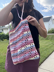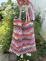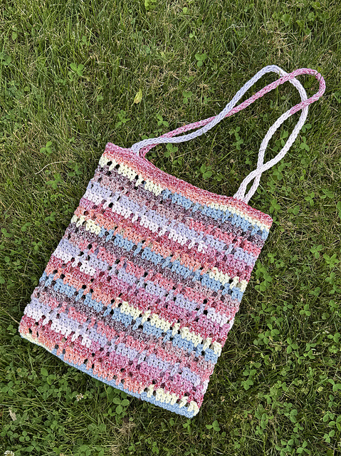 The Avenida tote is crocheted seamlessly from the bottom up and in the round. The straps are also crocheted and grafted to the bag.