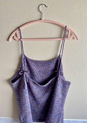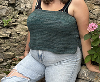 The Calypso Camisole is a cute cropped tank with a split hem, I-cord straps, and a lovely simple seed stitch texture. It is knit bottom up, both flat and in the round, with some optional shaping to suit your body. It is a size inclusive design, written in a format where you will be able to customize your tank to fit your desired measurements. The pattern includes guidelines and tips for modifying and shaping your tank to your desired fit.