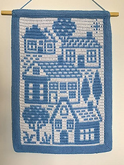 I’m often drawn to images of houses in my craft. Maybe it’s the comfort of home or just the colour possibilities. This pattern is designed for a wall hanging with a simple border. However, the pattern has a 64 stitch design which can be repeated to make a blanket or cushion/pillow.