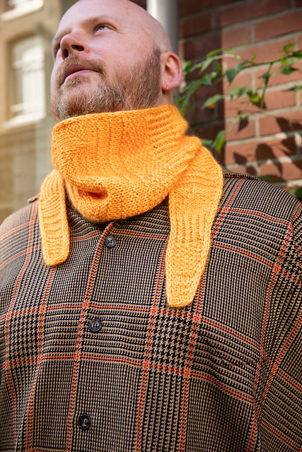 20 sts & 40 rows = 4″ / 10cm in garter stitch after blocking (holding both strands of yarn together)