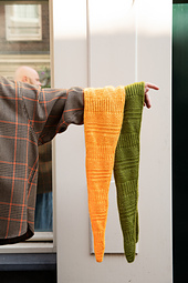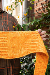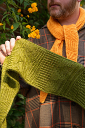 *This textured skinny scarf is a quick knit filled with simple stitch patterns. Begin at the wingtip with an I-cord cast on. Increases at one edge gradually shape the little shawl followed by decreases. The long skinny shape is very fast to knit and the shifting stitch patterns make for a motivating knitting experience. Hold one strand of DK weight West Wool Tandem together with a coordinating color of West Wool Glowhair, our lace weight mohair silk. Once you make it, you will be itching to cast on another color for your friend. The gratifying pace of this project makes it perfect for gift knitting!*