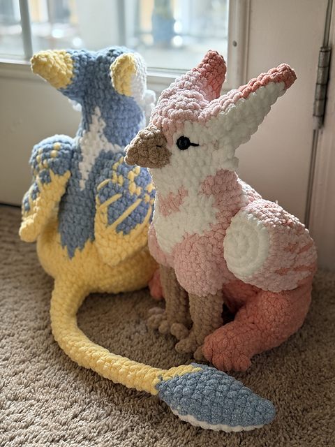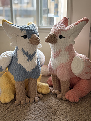 This pattern was designed and created by Madison MacArthur/The Archaic Dragon. It contains 1 PDF (25 pages) of written instructions with step by step pictures to help you create your very own messenger mouse griffin! The finished project is a little over 1 foot tall, about 8 inches wide, and about 1.5 feet long.