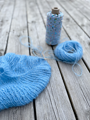 A lightweight yarn was chosen as the main yarn, as it is suitable for both dense and airy textures (Alpakka Lin). The sequin yarn features large sequins and a sturdy thread that creates a beautiful contrast and interplay with the main color. It is thicker than most sequin yarns around.