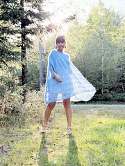 Worked from the top down with increases along the shoulder line. You will work short rows to shape the neckline. After completing the increases, the front and back are worked separately. Before adding the sequin yarn and larger needles, stitches are set aside at each edge for the armhole openings. The skirt is worked with drop stitches. The sleeve edges are worked separately at last.