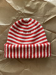 The hat is worked in one piece, bottom up with two or more colors. It includes a bit of color work (vertical stripes) and stripes (the horizontal ones) but everything is in stockinette stitch, so no purling needed! The pattern is divided into nine simple steps making it clear and easy for you to follow. Note that due to the nature of color work, the brim of the hat is not very stretchy. To ensure a good fit for your hat, make sure you get the correct gauge!