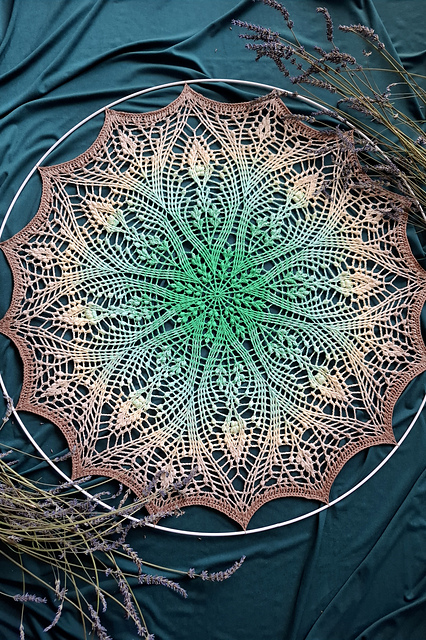 Kupalna is an openwork, plant-based mandala with a fern flower motif, full of puffs and posts stitches, inspired by my Kupala shawl pattern. The pattern is not repeatable, consisting of 36 rows. The file includes a pattern for both right-handed and left-handed crocheters. The mandala can also be used to make a doily.