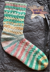 This sock pattern was originally designed as a Mystery Knit-along for Super Sock Scarefest 2025. The original clues are still available, but it's probably best to download the full pattern pdf.