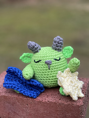 Meet Snuzzle, a cute, rounded little creature who never goes anywhere without his blankie and sunny pillow. His sleepy eyes might suggest he’s ready for a nap, but don’t be fooled—he’s always scheming something sweet.