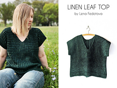 The Linen Leaf top is a garment version of the Linen Leaf shawl design. It features the same stitch pattern, now shaped into a top, layering vest, or even a sweater if you choose to add sleeves. The top's construction allows you to adjust the size or make custom modifications easily as you go.