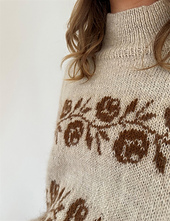 Rosie Sweater has two rose borders on the body and sleeves, and the clever construction is a combination of a dropped shoulder and raglan.