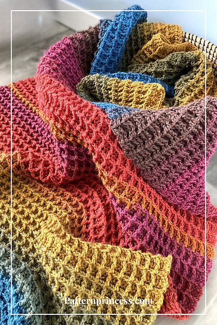 Crochet your own cozy waffle stitch blanket with this easy-to-follow PDF crochet pattern! The Waffle Whispers Throw includes 5 blanket sizes (baby to large throw), step-by-step photos, and video links to help you along the way. Perfect for advanced beginners ready to try textured stitches or experienced crocheters looking for a relaxing project.